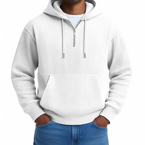Per uomo Felpa con cappuccio Velluto a coste Felpa con cappuccio e zip corta Aalbicocca Rosso bordeaux Nero Bianco Blu marino Con Cappuccio Semplice Tasca a marsupio Testurizzato Casuale Quotidiano