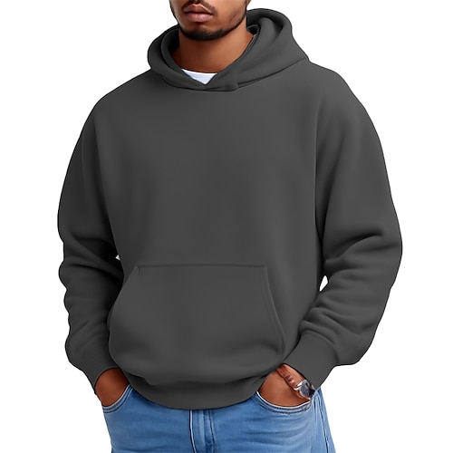 Per uomo Felpa con cappuccio Maglione Felpa con cappuccio in pile Nero Cammello Grigio Con Cappuccio Semplice Tasca a marsupio Sport Outdoor Casuale Quotidiano Streetwear Cool Abbigliamento Sportivo
