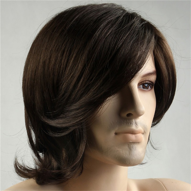 Men's Wig with Long Curl and Partial Fringe