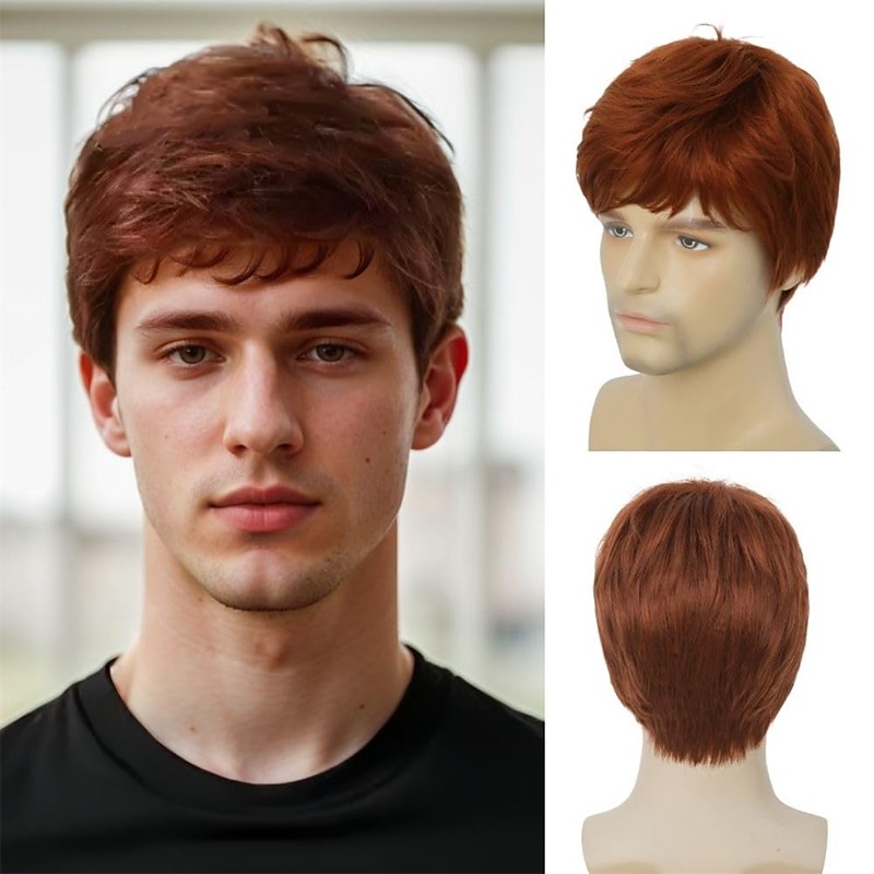 Mens Short Orange Wig Natural Realistic Synthetic Wig for Halloween Daily Use