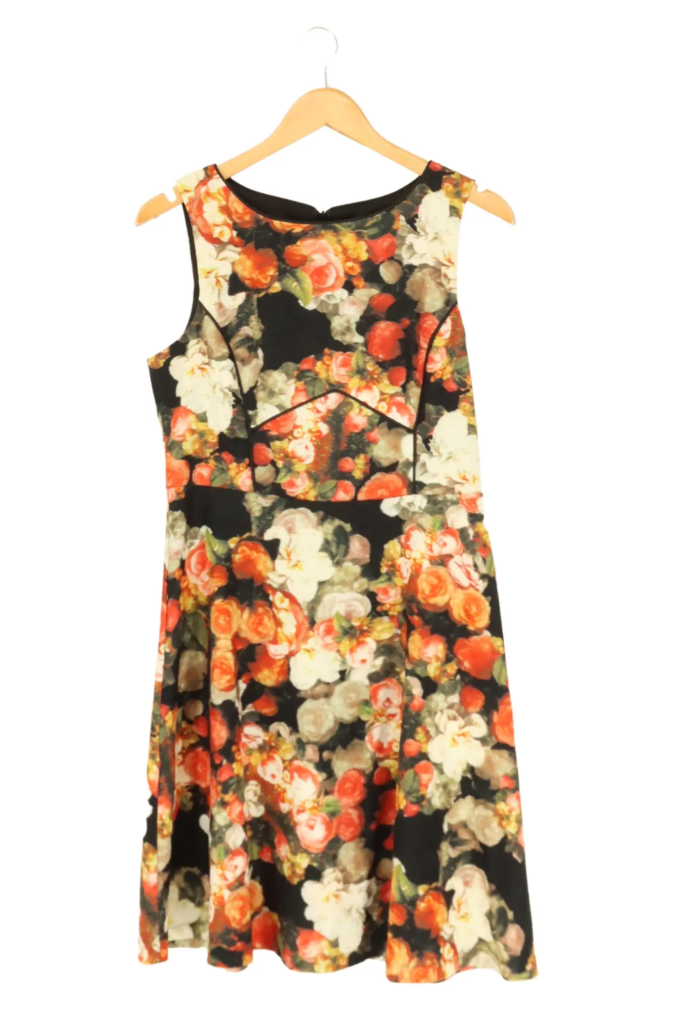 SMASHED LEMON Damen Freizeitkleid Gr. 38 Blumen Midi Mehrfarbig
