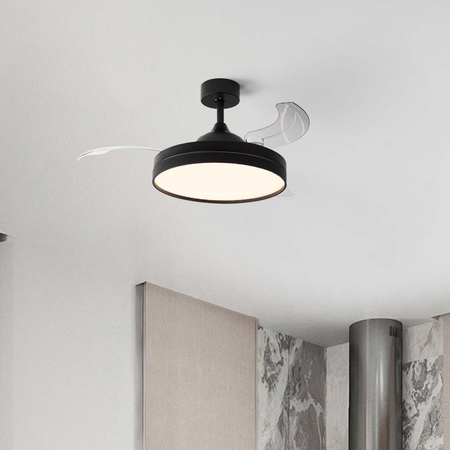 Nova Luce Nevma - plafondventilator met licht en afstandsbediening - Ø 107 x 49 cm - 36W LED incl. - mat zwart