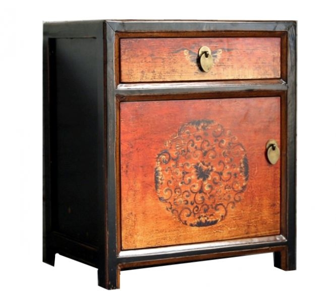 OPIUM OUTLET Möbel Kommode Nachttisch Nachtschrank Nachtkonsole Nachtkästchen "Fire" 35191-2 orange-schwarz asiatisch chinesisch orientalisch
