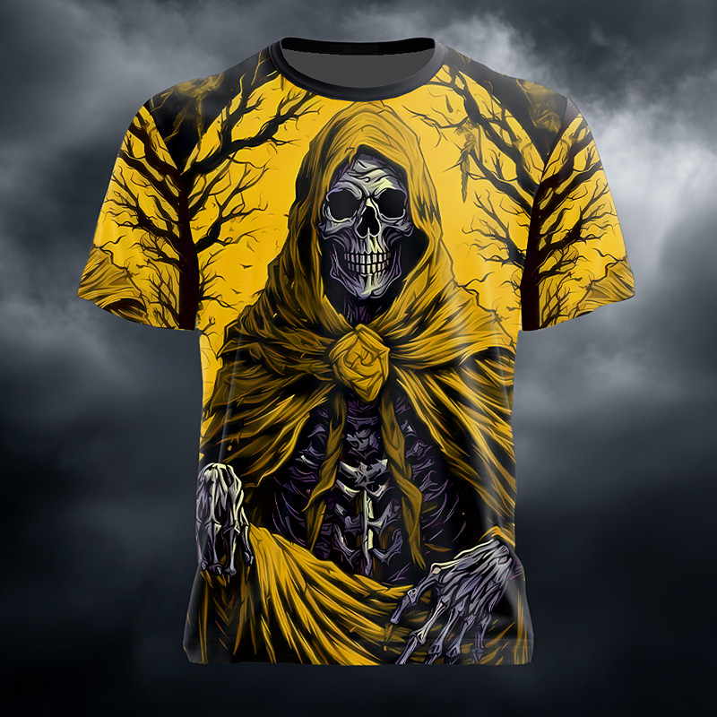 Men's Grim Reaper 3D Reaper T Shirt Short Sleeve T shirt 3D Print Crew Neck Shirt Exaggerated Designer Horror Party Street Holiday Yellow Red Blue Summer Spring All Seasons Clothing Apparel S M L XL