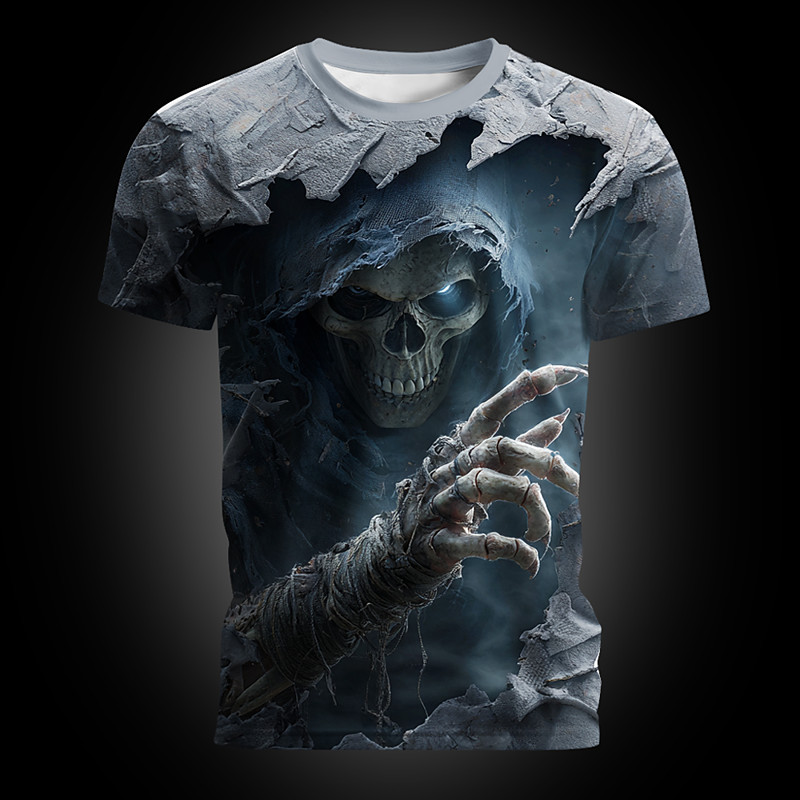 Men's Skull 3D Reaper T Shirt Short Sleeve T shirt 3D Print Crew Neck Shirt Exaggerated Designer Horror Party Street Holiday Black 1 Black Gray Summer Spring All Seasons Clothing Apparel S M L XL XXL