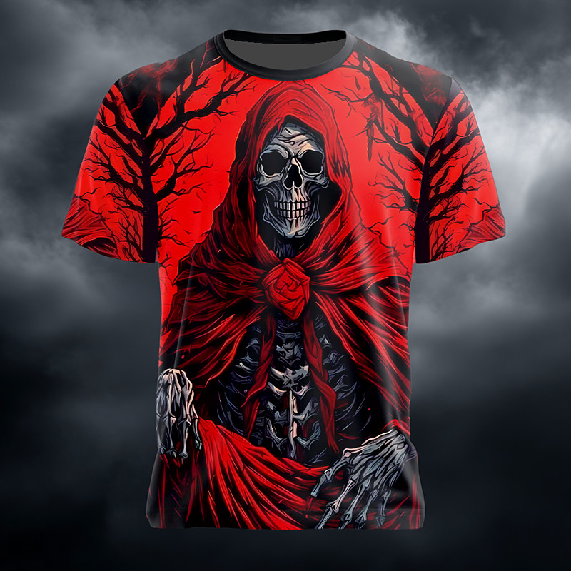 Men's Grim Reaper 3D Reaper T Shirt Short Sleeve T shirt 3D Print Crew Neck Shirt Exaggerated Designer Horror Party Street Holiday Red Blue Green Summer Spring All Seasons Clothing Apparel S M L XL