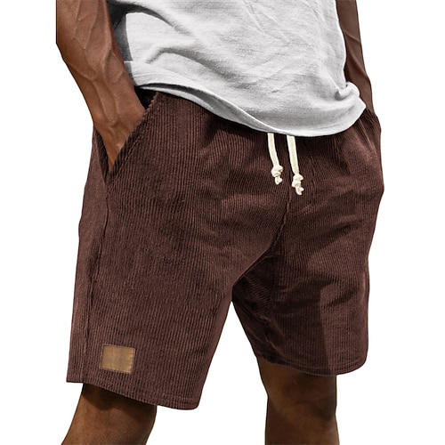 Per uomo Pantaloncini Estivi Shorts da Spiaggia Pantaloncini casual Pantaloncini di velluto a coste Coulisse Elastico in vita Tinta unica Comodità Lunghezza al ginocchio Quotidiano All'aperto Ferie