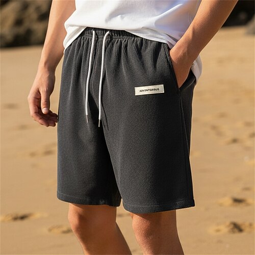Per uomo Pantaloncini Estivi Shorts da Spiaggia Pantaloncini casual Pantaloncini di velluto a coste Coulisse Elastico in vita Tinta unica Comodità Lunghezza al ginocchio Quotidiano All'aperto