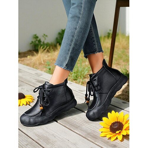 scarpe comode da donna in vera pelle con lacci – suola morbida e flessibile, stile casual retrò, ideali per l'uso quotidiano, passeggiate, viaggi e attività all'aperto