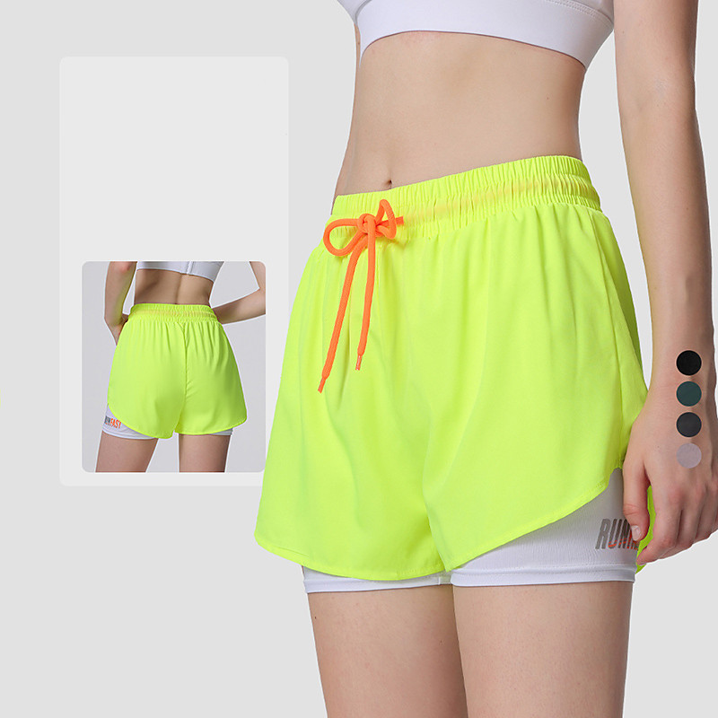 Women's Workout Shorts 2 in 1 with Pockets High Waist Dance Pilates Running Bottoms Solid Color Black White Yellow Sports Activewear Tight Fit