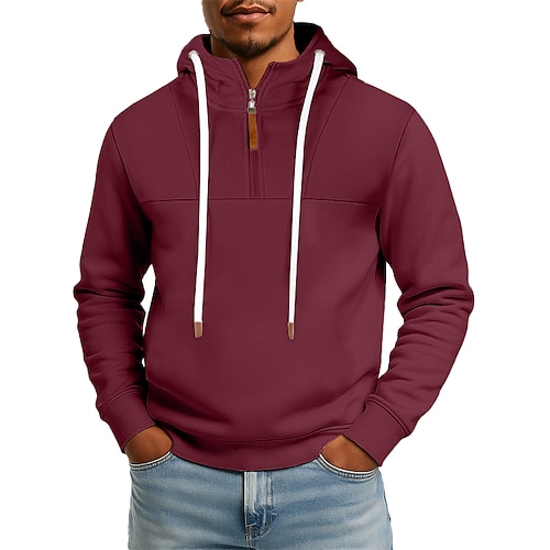 Per uomo Felpa con cappuccio e zip corta Felpa con cappuccio in pile Aalbicocca Rosso bordeaux Nero Bianco Rosso Colletto Mao Mezza zip Semplice Zip a un quarto Sport Outdoor Casuale Quotidiano