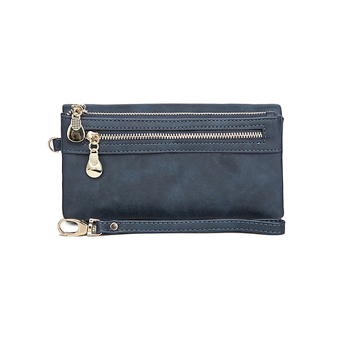 Per donna A portafoglio Portamonete pelle sintetica Shopping Giornaliero Per eventi Cerniera Massima capacità Duraturo Fiore decorativo Foglie Bianco Blu