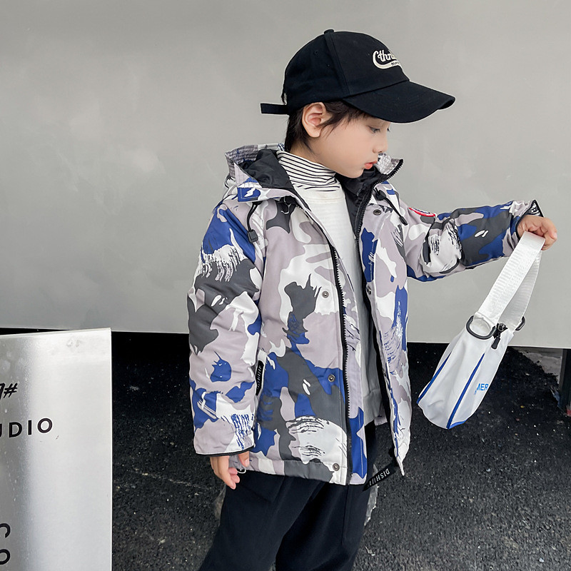 Kids Boys' Down Coat Puffer Jacket Outerwear Letter Long Sleeve Coat School Cool Adorable Black Green Fall Winter 7-13 Years