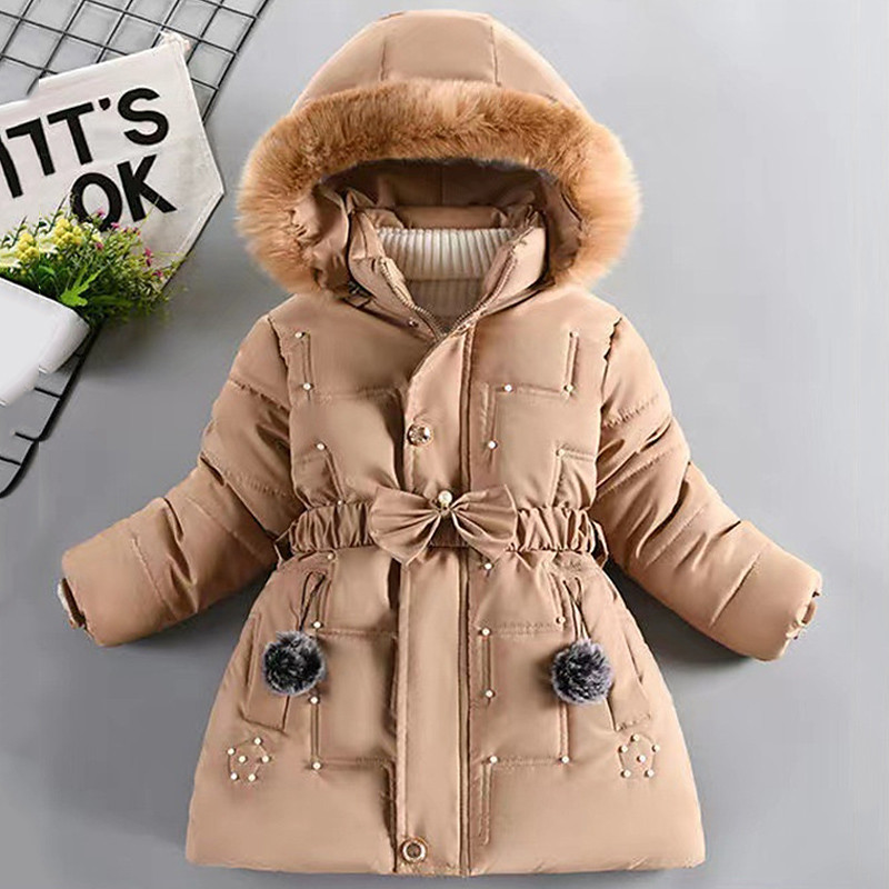 Kids Girls' Down Coat Solid Color Fashion Zipper Pocket School Coat Outerwear 4-12 Years Winter Black Navy Blue Brown