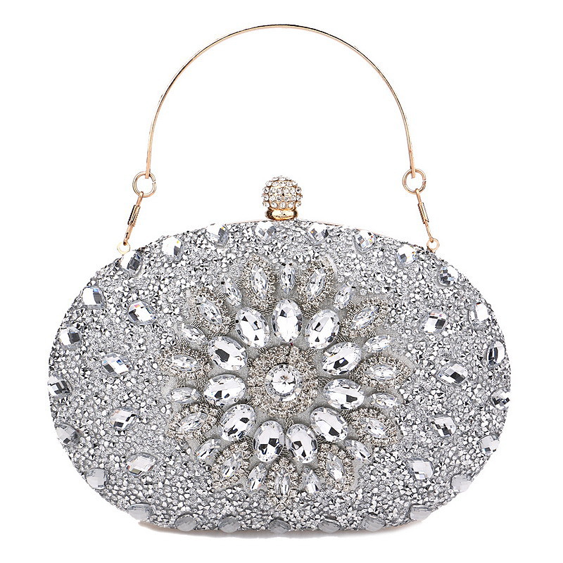 Women's Luxury Blue Crystal Evening Clutch – Rhinestone Handbag with Handle for Weddings, Parties, and Formal Events