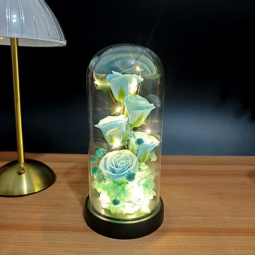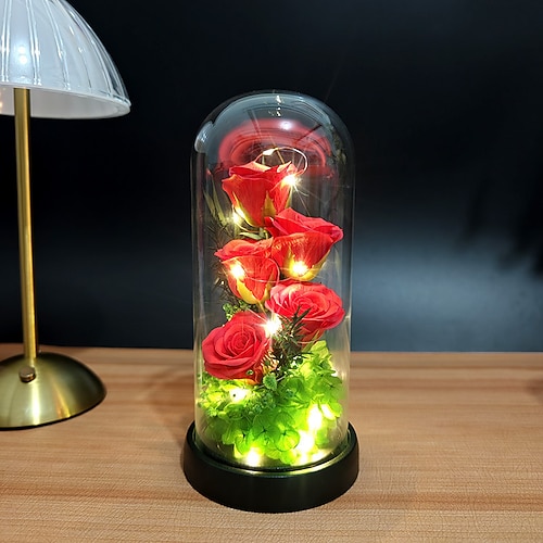 Bouquet di rose eterne, regalo per la mamma, fiori di sapone conservati in una cupola di vetro con luce, decorazione per la festa della mamma e del compleanno per le donne