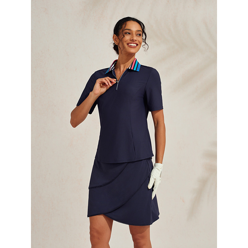 Women's Golf Polo Shirt Navy Rose Red Short Sleeve Ladies Golf Attire Clothes Outfits Wear Apparel