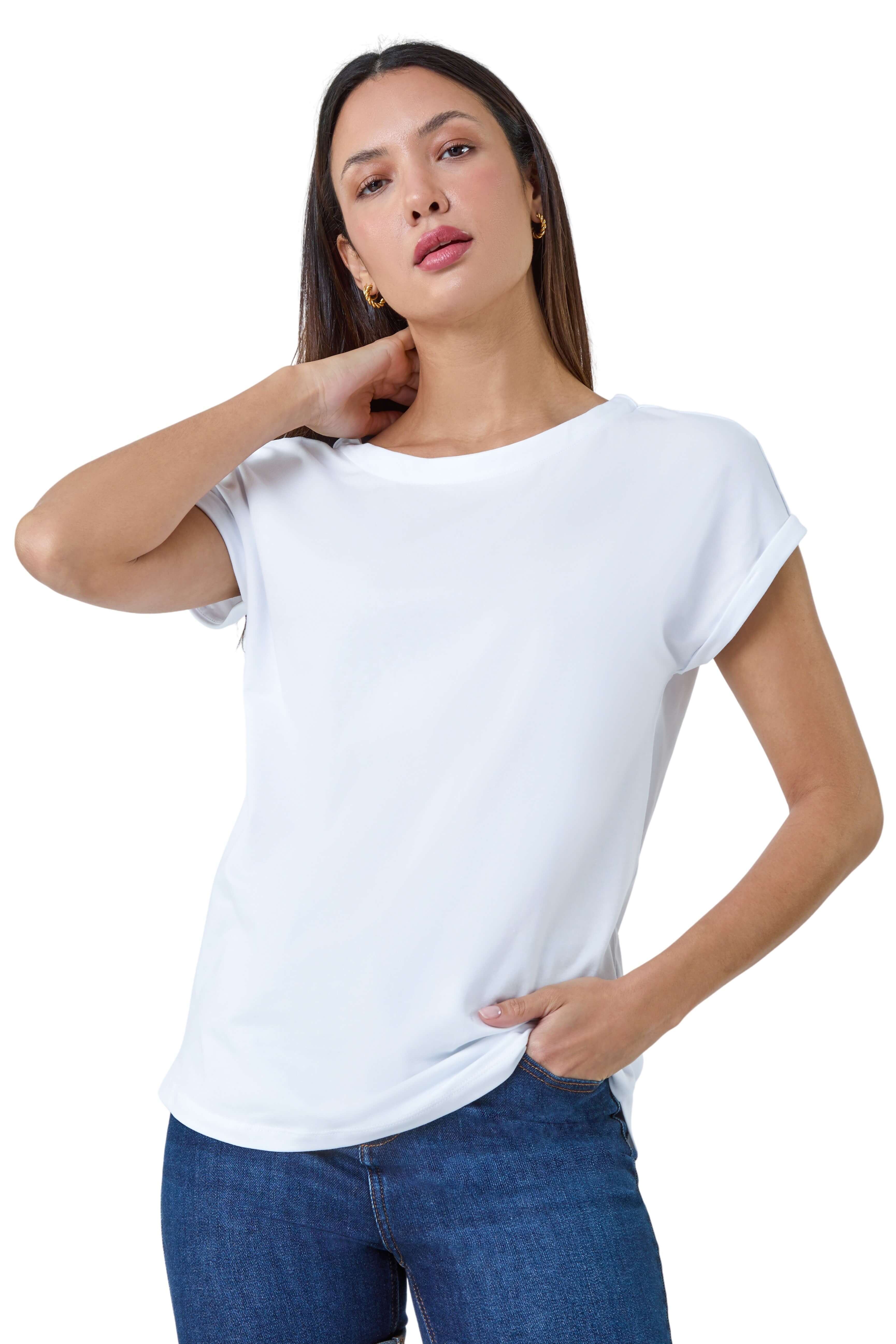 Roman Womens Plain Stretch Cotton Jersey T-shirt - White - Size 14 UK | Roman Sale | Discount Designer Brands