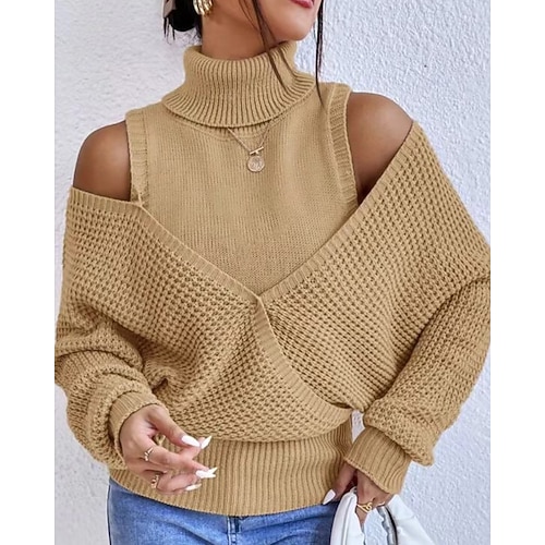 Per donna Felpa Maglione Streetwear Casual Colore Puro Dolcevita Lavorato a maglia Spalle scoperte Manica Lunga Top Regolari Maglia Quotidiano Ferie Uscire Rosa Cammello Autunno Inverno