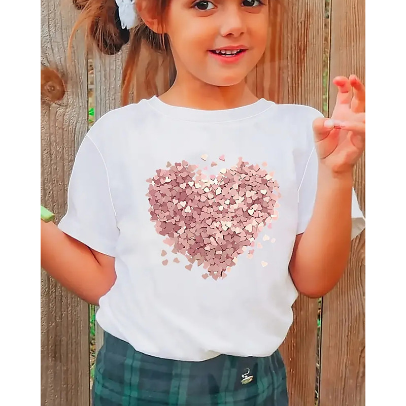 Girls' 3D Heart T shirt Tee Short Sleeve Summer Spring Fashion Basic Kids 4-12 Years Crew Neck Outdoor Casual Daily Regular Fit