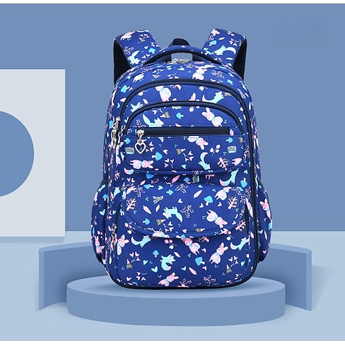 Zaino scolastico stampato per bambine con ciondolo a forma di cuore con cerniera, zaino multitasche leggero e impermeabile per studenti delle scuole elementari e medie, disponibile in rosa, viola, blu e beige