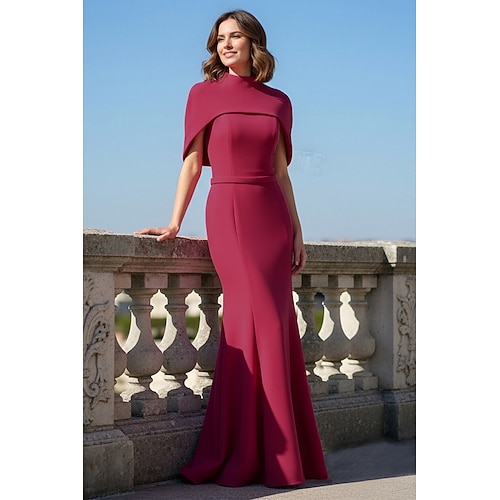 Sirena Tromba Tubino Colonna Lunghezza al pavimento Abito da ballo con mantello Abito da Sera Abito formale Elegante Setoso Senza Maniche Collo Alto Matrimonio Formale Mantelle Crepe Elasticizzato con