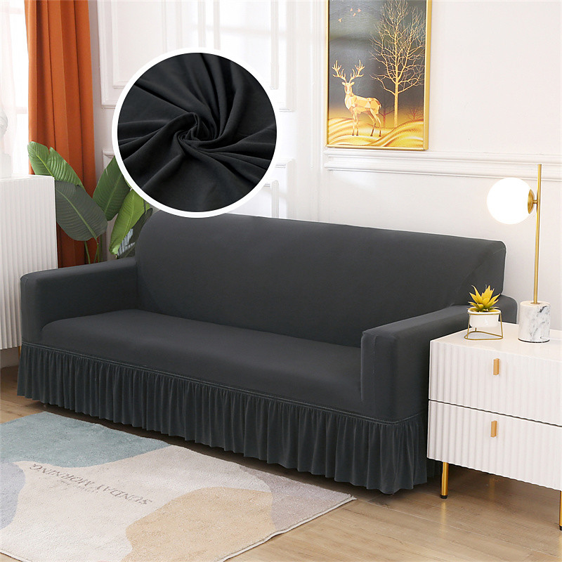 Sofa Cover With Skrit Solid color Skirt Style Sofa Cover Simplicity for Living Room Slipcovers Sofa Cover Seasonal Styles Elastic Couch Cover Sofa Towel Chair Protector 1PC