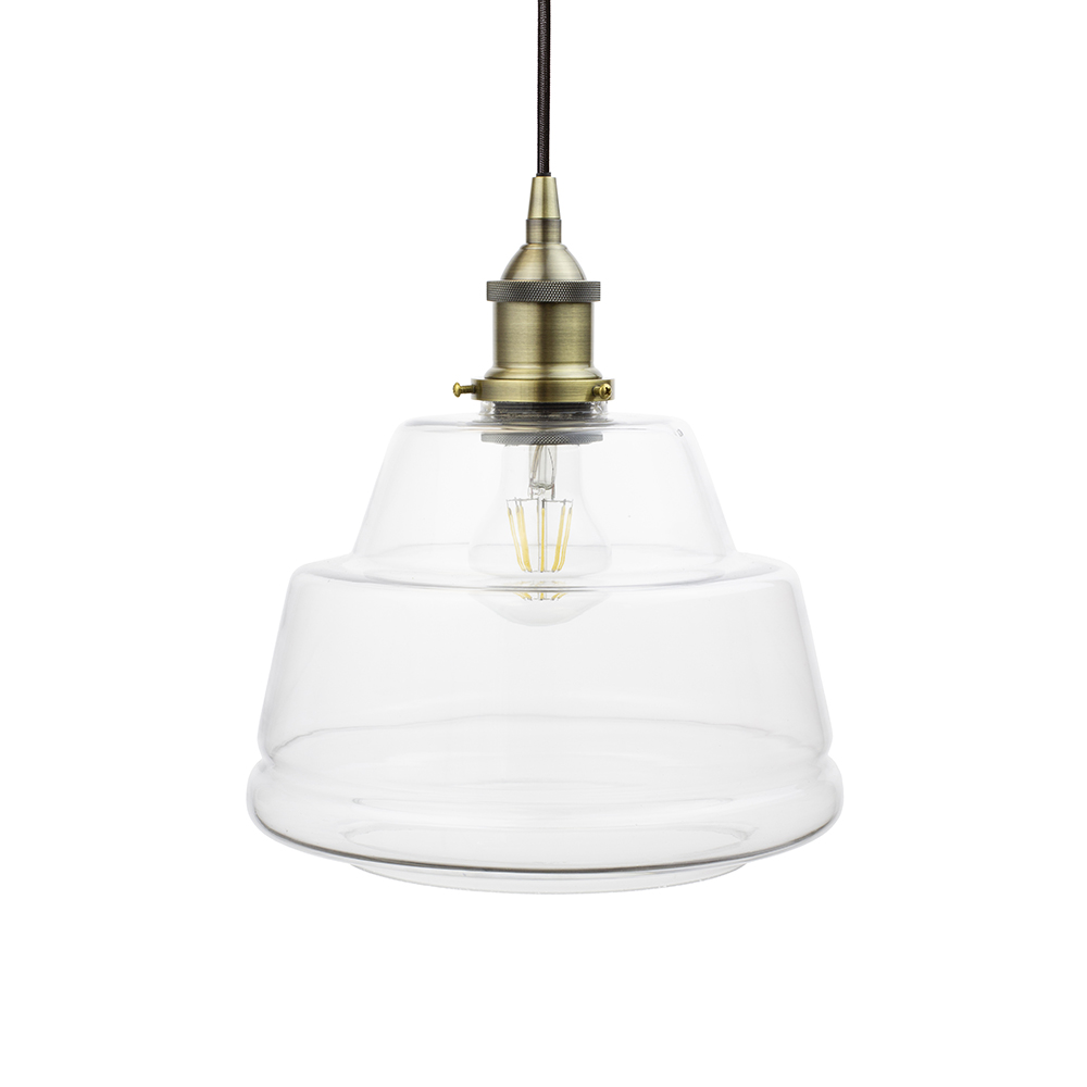 Stepped Clear Glass Pendant Light with Antique Gold Lamp Holder and Black Twisted Cable - The Soho Lighting Company