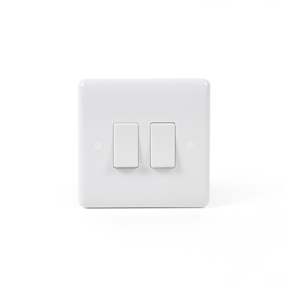 Lieber Silk White 2 Gang 2 Way 10A Light Switch - Curved Edge