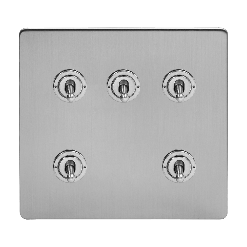 Soho Lighting Brushed Chrome 5 Gang Toggle Light Switch 20A 2 Way Screwless