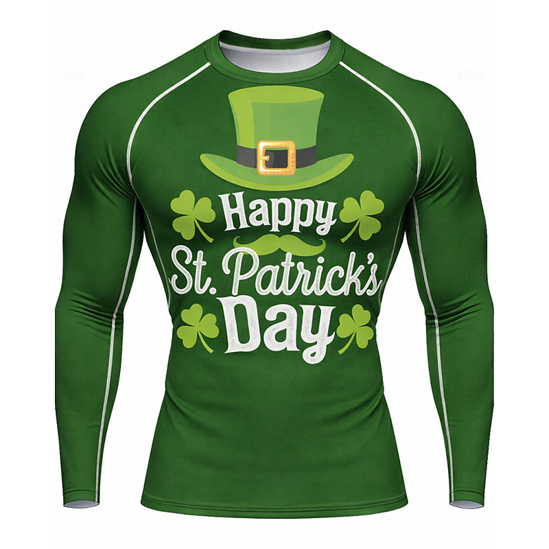 St. Patrick Men's Running T-Shirt Athletic Shirt Gym Shirt Fitness Shirt Long Sleeve Top Casual Street Fall UV Protection Elastic Athletic Sportswear Activewear Green
