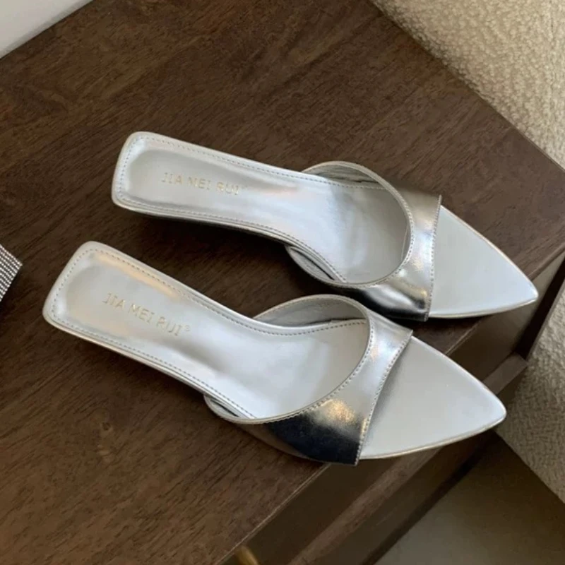 Per donna Tacchi Quotidiano Estate Tacco a Spillo Basso Punta aperta Moda Camoscio Glitter Scintillante Cerniera Argento Nero e Oro Nero