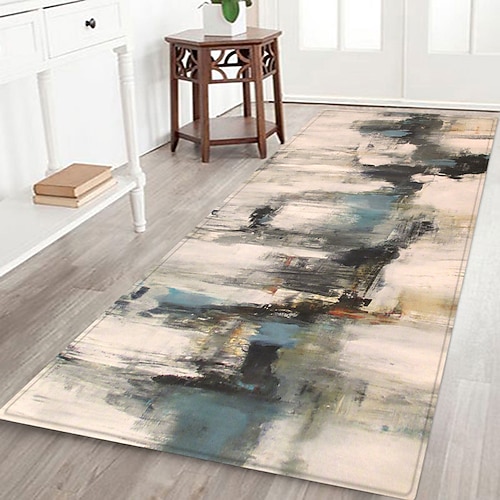 tappeto da corridoio con motivo artistico a schizzi d'inchiostro, tessuto di flanella stampato, decorazione per il pavimento della casa, zerbino antiscivolo morbido, tappeto per ingresso e bagno