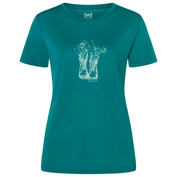 super.natural - Women's Flower Boots Tee - Merinoshirt Gr XS türkis