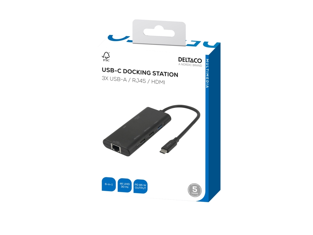 DELTACO - Dokkingstasjon - USB-C - HDMI - 100Mb LAN