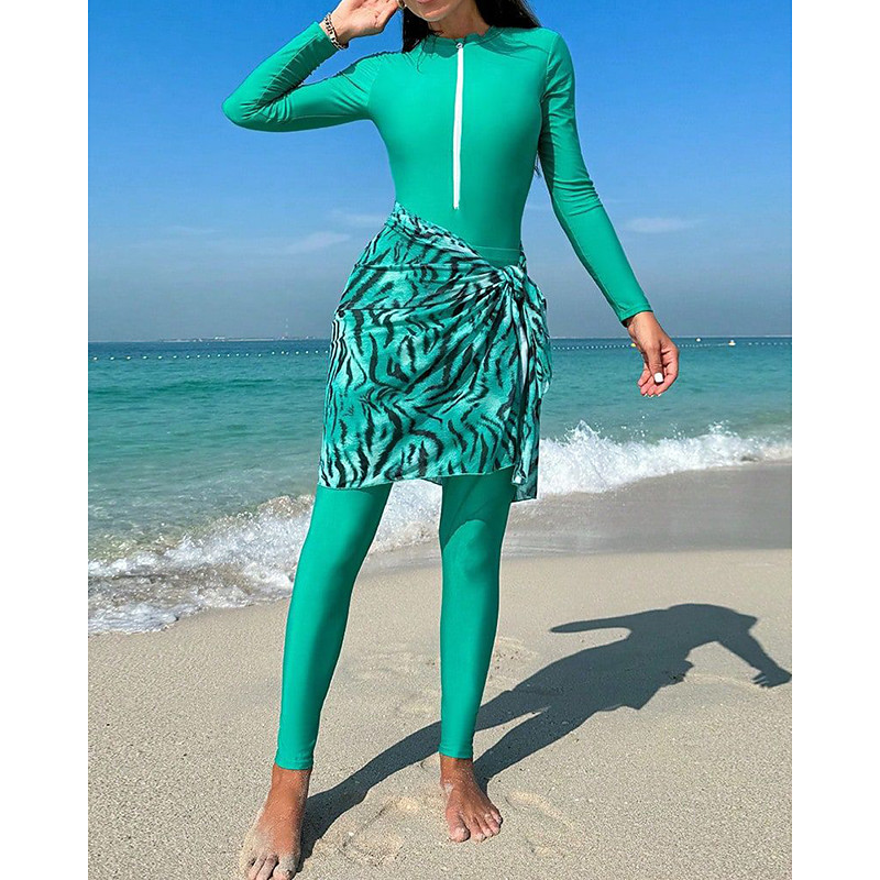 Women's Rash Guard Bathing Suit One Pieces Printed UV Protection Elastic Long Sleeve Swimwear Zip Up Surfing Beach Swimming Summer