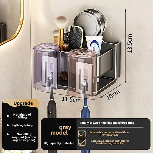 portaspazzolino a ventosa con tazze, portaspazzolino per mensola da bagno, portaspazzolino per collutorio, organizer per doccia, portaspazzolino da parete, organizer per bagno, organizer per