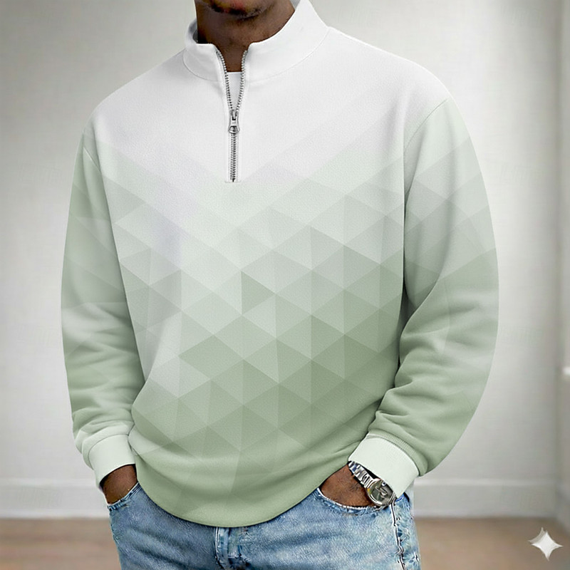 Men's Gradient Geometic Polo Long Sleeve Standing Collar Casual Athleisure Vacation Athleisure Casual Daily 3D Print Spring Fall Blue Green Purple