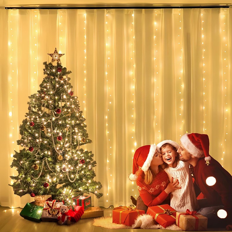 300LEDs Solar Curtain Lights Outdoor Indoor Solar String Lights Outdoor Waterproof Fairy Window Lights Twinkle Lights 8 Modes Decoration for Home Garden Patio Wedding Party