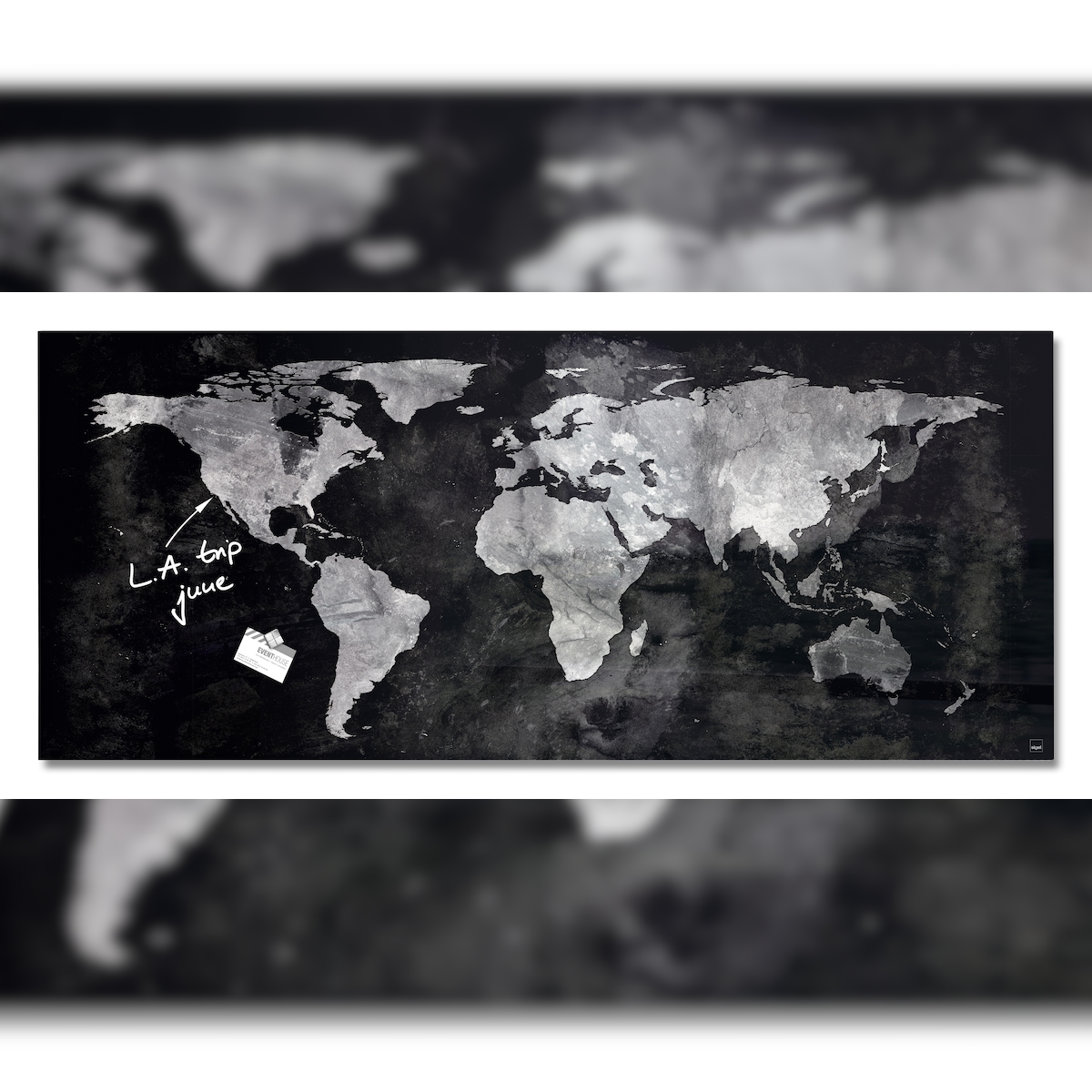 Sigel GL246 Glas-Magnettafel / Magnetboard Artverum, 55x130 cm, Design World-Map