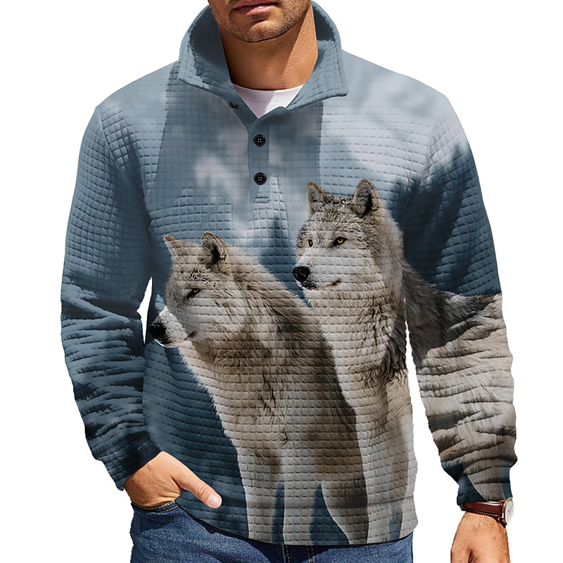 Men's Wolf Waffle Sweatshirt Daily Classic Hunting Stand Collar Outdoor Work Gift Blue Blue 2# Dark Blue Buttons Fall Winter Designer S M L XL XXL XXXL