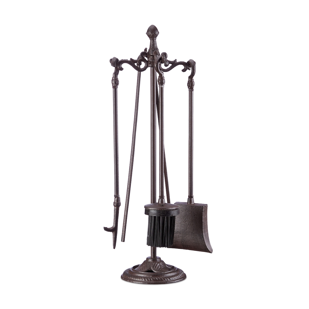 Relaxdays Kaminbesteck 5-teilig, Kamingarnitur zum Aufhängen, mit Schaufel, Besen, Schürhaken, Zange u. Halter, schwarz