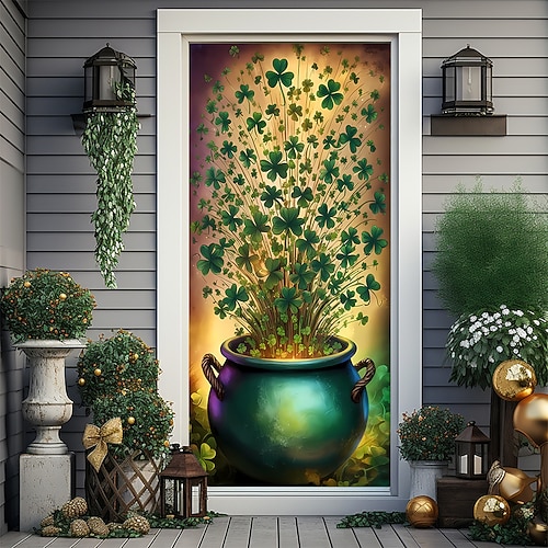 Festa di San Patrizio Poster Copertura della porta Banner per esterni Cappello verde Trifoglio Carino 3D Da serata Dormitorio Stanza per adolescenti Dormitorio universitario Ragazzi Man Cave Frat