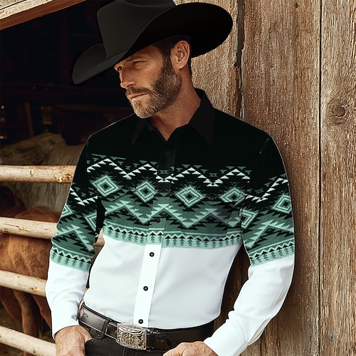 Per uomo Azteco Etnico Cultura indiana Camicia Camicia Western Camicia da cowboy Manica Lunga Vintage Retrò All'aperto Casuale Abbigliamento da lavoro Primavera Autunno Collo ripiegato Due tasche