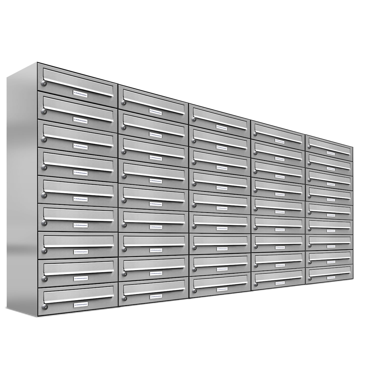 AL Briefkastensysteme 45 Fächer Premium Edelstahl Wand Briefkasten Anlage für Post A4, modern, robust und wetterfest, Artikelnummer: 132V45EA5