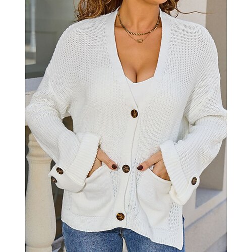 Per donna Cardigan Moda Morbido Tinta unica A Coste Scollo a V Tasca Bottoni Lavorato a maglia Manica Lunga Top Regolari Maglia Quotidiano Ferie Uscire Nero Bianco Autunno