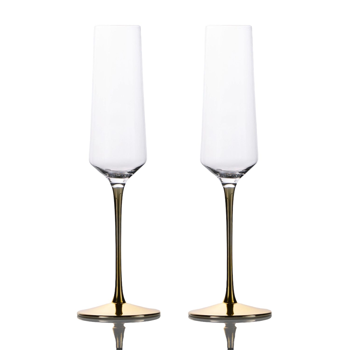 Intirilife 2x Champagner Glas mit goldfarbenem Stiel - 200 ml Füllmenge - Sekt Prosecco Glas Kristallglas stoßfest