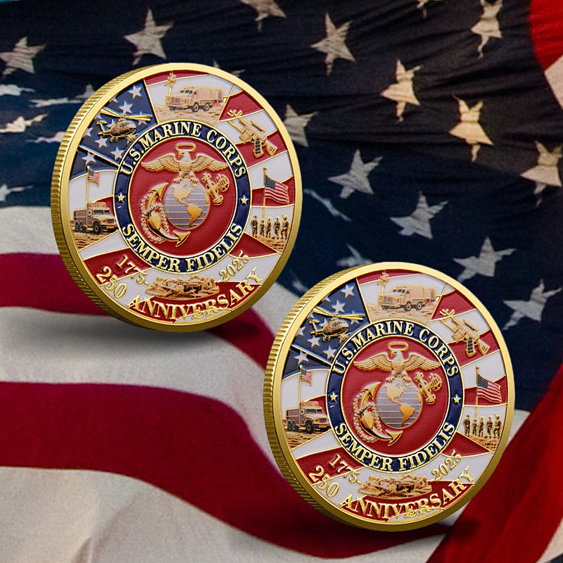 U.S. Marine Corps Commemorative Coin – United States 250th Anniversary Iron Art Military Challenge Coin, Metal Collectible Medal for Marines Patriotic Gifts