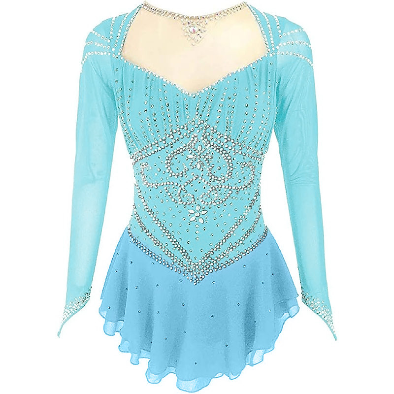 Figure Skating Dress Women's Girls' Ice Skating Dress Blue High Elasticity Training Competition Skating Wear Classic Crystal / Rhinestone Long Sleeve Ice Skating Figure Skating
