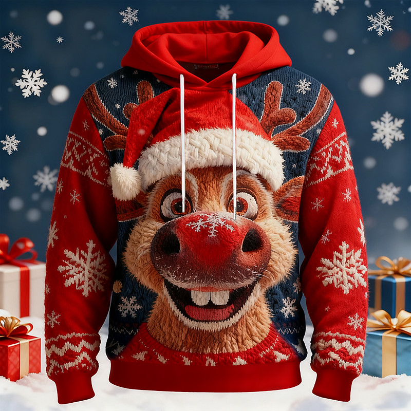 Christmas Men's Elk Hoodie Sweatshirt Fashion Daily Casual Long Sleeve Crew Neck Hooded Home Party Gift Blue Red Purple Green Drawstring Fall Winter Designer S M L XL XXL XXXL